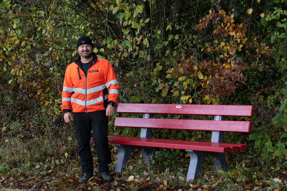 Les anciennes poutres en bois ont atteint leur durée de vie et seront remplacées par du plastique recyclé. Les bancs, sans échardes et nécessitant peu d'entretien, brilleront encore d'un rouge intense dans des années. Cela ne réjouit pas seulement Reto Schlatter du Werkhof Biberstein, mais aussi la population.