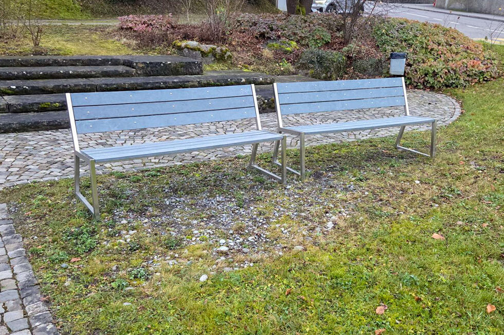 La commune de Kesswil sur le lac de Constance a utilisé des lattes grises de BM Draussen pour la réfection des bancs existants.